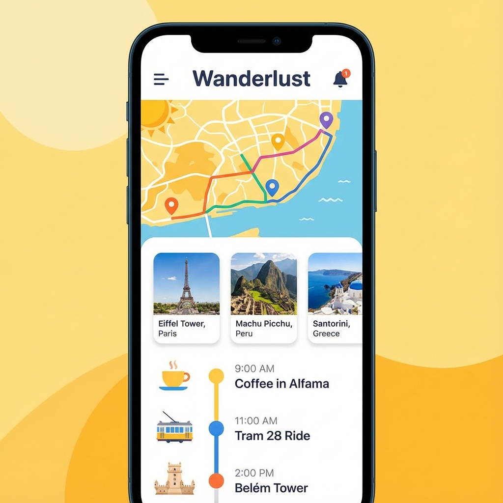 An all-in-one travel companion app for itinerary planning, flight booking, and local guide recommendations.
